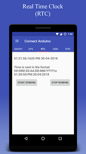 7. RTC tab to get date and time from android phone with custom refresh interval.