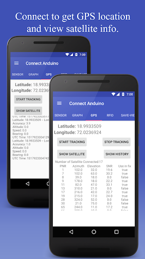 6. GPS tab to get latitude, longitude, altitude, speed, accuracy, bearing, UTC time. You can also view the number of satellite connected.