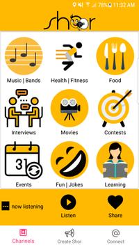 SHOR is a first of its kind Social Radio app that lets you: (a) Create shor (short audio clips) at your location, broadcast and make your voice/audio heard by the world in almost real time (b) Choose categories and listen to radio streams created by others, clap and enjoy