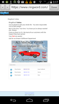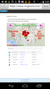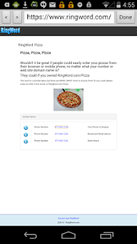 Our mobile app allows for easy entry and search in Android devices via text, and on some devices by dictation. You simply enter the RingWord "word or words" into the text field and click. A profile will appear for the business or person with their sales number highlighted for easy 1 click ordering. The next time you are driving and hear an ad on the radio, you won't have to remember their phone number, simply enter their RingWord.
