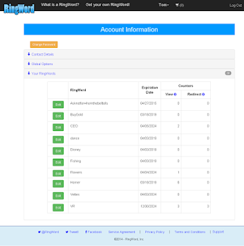 Account holders can see how beneficial a RingWord is by viewing their hits in their account view. RingWords can be resold at a profit through the web site or our companion site: RingWordAuction.com