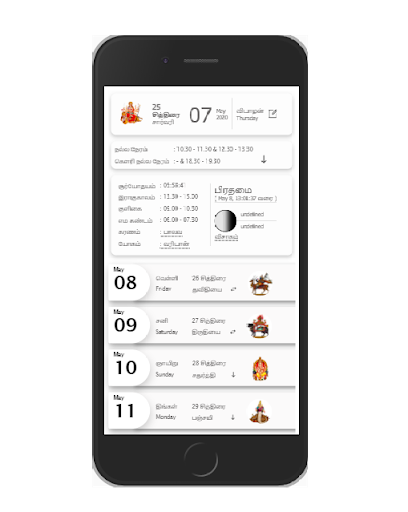 Adithi Tamil Calendar Offline provides free calendar service which includes basic details like tithi,nakshathram,karanam,yogam,chandrastamam and useful details