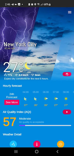 A free weather app with accurate weather forecast, local weather, storm tracker, radar & widget. Let enable GPS location and you will receive the weather condition in your current location. From local weather updates to Winter Cast snow alerts, get the weather forecast you can rely on. Weather forecast provides weather news, forecast updates, free weather alerts, plus today’s forecast and much more. The weather forecast app has many functions and is totally free like visibility distance, relative humidity, precipitation in different unites, in addition to ten days future forecast, dew point, wind speed and direction, and hourly weather forecast.
