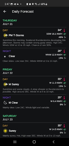 - Hourly weather or daily weather, today’s weather, tomorrow’s weather.
