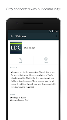 Welcome to the Life Demonstration Church mobile app. Download our app for media content, give a donation conveniently or learn more about us. Knowing the Father & Demonstrating Him is what LDC is all about!