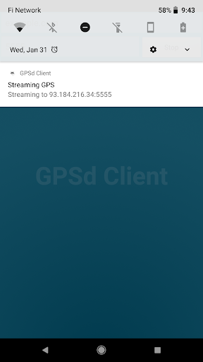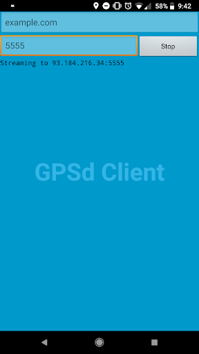 ). In the Android app, enter your host's IP and port and hit Start. Your host is now receiving GPS data forwarded from your phone. You can test it with gpsmon or other GPSd utilities.