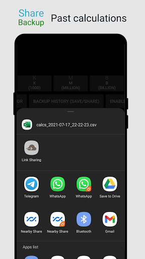 ✓ Share History as csv via Telegram, Whatsapp or email; save to your storage. No Storage permission required.