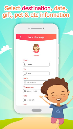 then set challenges by determining the start and endpoint on the map also you can set a gift for your children.