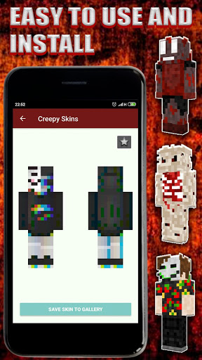 where to download the skin for Minecraft™ has become even easier and absolutely free. Tired of endlessly looking for a colorful skin from a horror story on the Internet? We have prepared for you hundreds of scary and terrible skins that will surely appeal to all fans of the game Minecraft ™ for both boys and girls. Become one of the unique characters in the game, which will inspire fear in a huge number of players of all ages. Our application 100% will help you with this. Download skins on your device that stand out for their particular cruelty, scary appearance and frightening details. Perhaps it will be an enderman skin, clown skin, demon skin, momo skin, bloody skin, grenni skin,