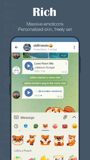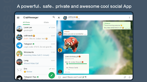 6. FUN: ClubMessager provides powerful photo and video editing tools, free animated stickers and emojis, fully customizable themes to change the appearance of the application, and an open sticker/GIF platform to satisfy all your needs Express needs.