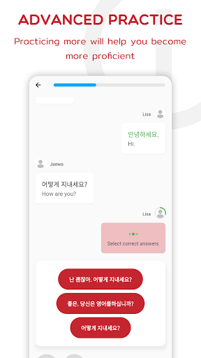 And last but not least, there're several kinds of tests in the app's practice modes. Taking the tests will help you exercise your mind and improve recall. It's always hard to practice by yourself, especially when it comes to enhancing your Korean speaking skills. But with Korean Dialogues Practice, we provide such convenient tools for you to make conversations. Don't let the awkward moments trip you up. Let's start speaking Korean with us right now!