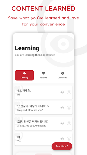As we know, there're four principal skills for learning a language are reading, writing, speaking, and listening comprehension. It's the same when you learn Korean. In this app, speaking and listening would be focused. About listening, we allow you to explore such huge conversations audio sources that could be able to hear all the contents instantly and clearly from anywhere, anytime inside the app with just a simple click. Besides, recording and speech to text features are so useful to make a recording on your own that can be heard later for comparison and correction.