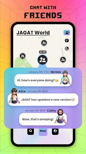 Share real-time updates with your friends and see what they are up to on JAGAT. What's more, you can map a new world that's uniquely yours! Stay connected with close friends through instant messages and video chats, and build your own communities!