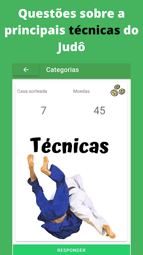 Este é um jogo de perguntas e respostas para auxiliar na aprendizagem dos conteúdos do judô, tanto em questões teóricas quanto práticas.