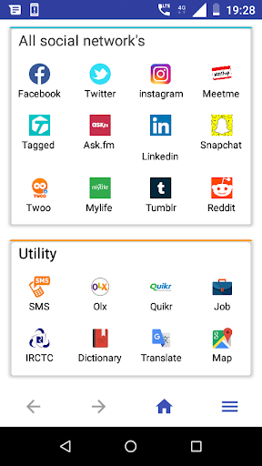 1) This is all in one app's , Here you can find All social networking app like Facebook, Twitter, Instagram, Meetme, Tagged, Ask.fm, Linkedin, Snapchat, Twoo, My life, Tumblr, Reddit,