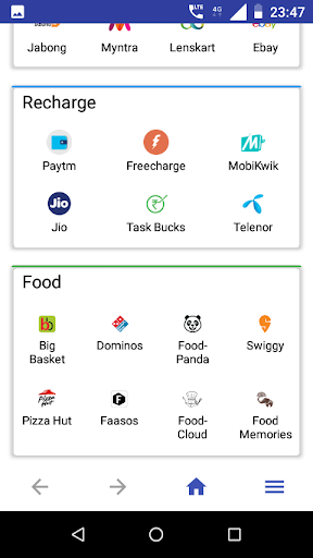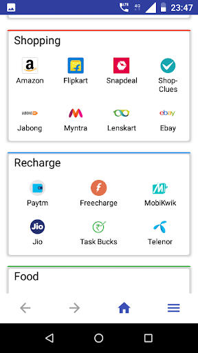 3)All in one Shopping app- Amazon, Flipkart, Snapdeal, ShopClues, Jabong, myntra, Lenskart, eBay,