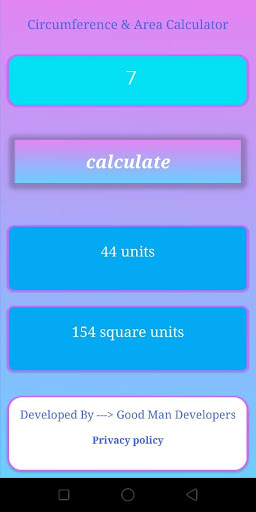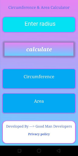 This app can be used to calculate the area and the circumference of a circle . This app is made for students , they can calculate circumference and area at same time by just one click. It's main purpose is to make calculation ease
