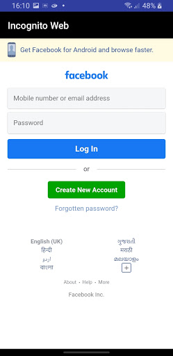 incognito web is a private browser in which the history is not stored by the browser. The user data is not traced by us too. It gives you a full Incognito experience.