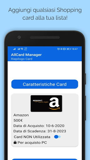 Avoid surprises! Thanks to AllCard Manager you always have with you the list of cards you have purchased and thus avoid making them expire.