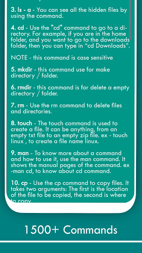 Linux Command Library contains basic useful commands of Rhel and Kali in a well-arranged manner So that a beginner can easily learn these commands. The main difference between this app and others is that this app contains a simple and basic layout and design. The best thing about this application is that you can use it for free and also you can use it offline.