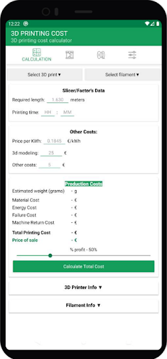 3D printing cost calculator, which provides a simple and quick way to estimate the cost of a 3D printed part before it is printed.