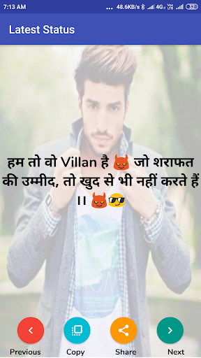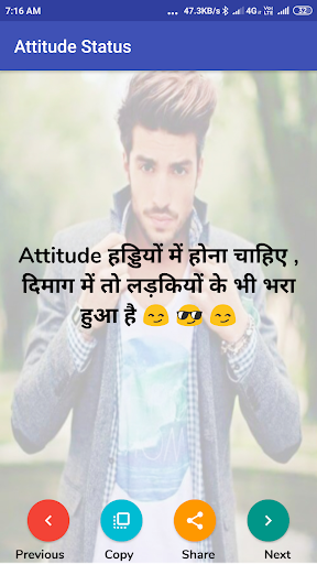 Attitude Status application is a great status application having various Status in Hindi and English Language.