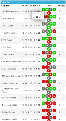 Sehen Sie sich das Botola Pro -Spiel direkt auf Ihrem Handy an, genießen Sie 6 Stunden von der Wiederholung von Ariadia TV, wissen Sie die Bewertung und die Klassifizierung von Clubs.