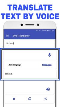 One Translator - Translate all langueges Voice text translator is thus cool for language conversion and translation. a bit words translator app offers world languages package. Free live text translator app is hall mark for speech and written content exchange. Universal language speech translator is meaning for translation from English to Spanish, English to Hindi, English to French, Chinese to English, Arabic to Swedish, interpretation from Dutch to Chinese Simplified (简体中文) etc.