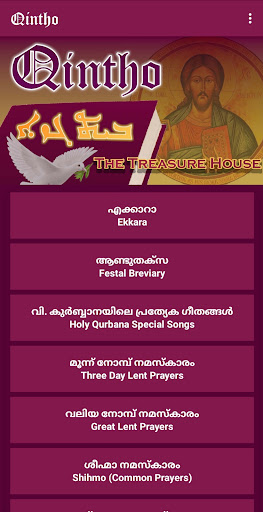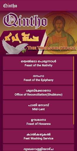 Qintho is an app developed for the study and quick reference of the liturgical Songs of the Malankara Orthodox Church. The songs are categorized into different sections which helps one to access a particular song easily .