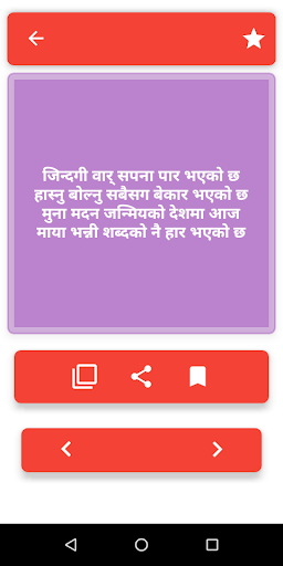 The interface of the shayai app is user friendly and cool looking that every users demand for.This app mainly contain Nepali Shayari and Hindi Shayari with different category such as Romantic Shayari, Love shayari, Funny shayari,Hindi shayari ,Nepali Shayari,Latest shayari,Dosti shayari,Sathi lai shayari,Shayari to gf/bf,Sad shayari,GoodMorning shayari,Goodnight Shayari,Best wish shayari,Birthday wish shayari and many more..