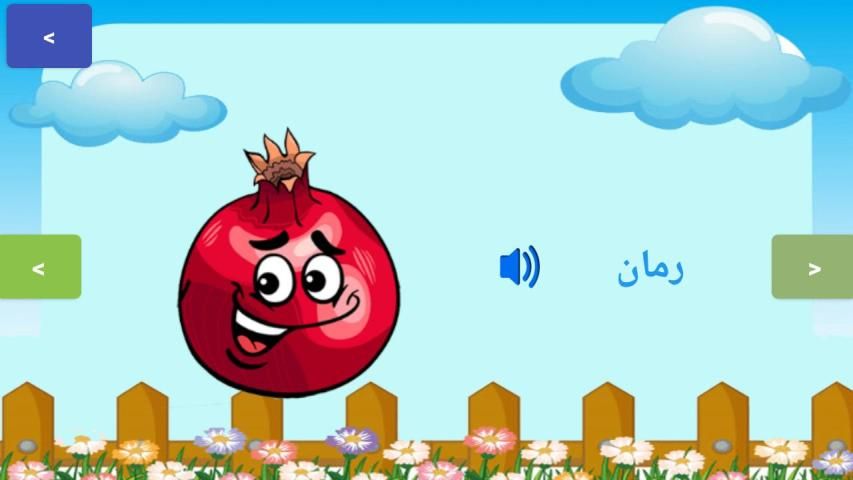 تعليم اسماء الفواكه مدعوم بالصور والصوت ايضاً وبصور جميلة تجذب نظر الطفل وتجعله يرغب بالاستمرار في التعلم
