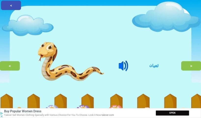 تعليم اسماء الحيوانات حيث يحتوي التطبيق على اكثر من 50 حيوان مدعم بالصور وكذلك لفظ اسم الحيوان