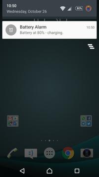 Whenever the battery meets the condition (level and charging status) of an active alarm, the user will receive a notification.