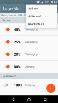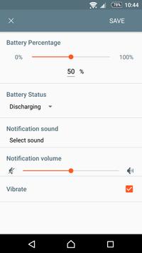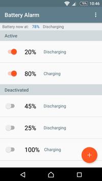 Battery Alarm allows users to create their custom notifications for their device's battery status. Users can create, edit and delete alarms by choosing the battery level(%) and charging status.