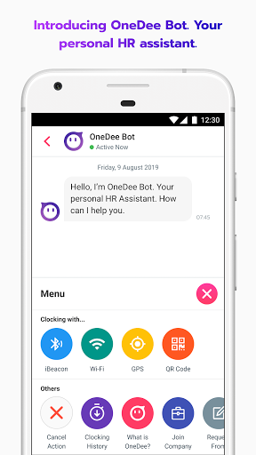Using OneDee chat bot for clocking in & out with iBeacon, Wi-Fi, GPS or QR Code