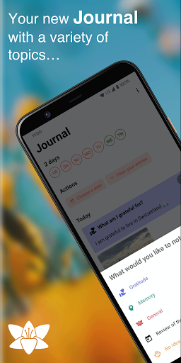where not only can you write down gratitudes with pictures to illustrate them, but also memories, your daily check-up every night or your weekly bilan every weekend. You can also answer questions on a variety of topics such as personal development, spirituality or motivation.