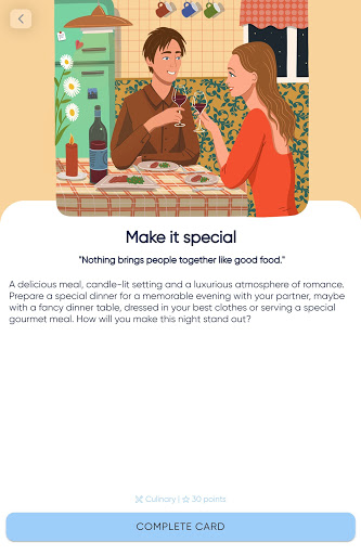 The new app which helps you connect with your partner and friends, discover new fun activities to do with each other and build life lasting memories together.