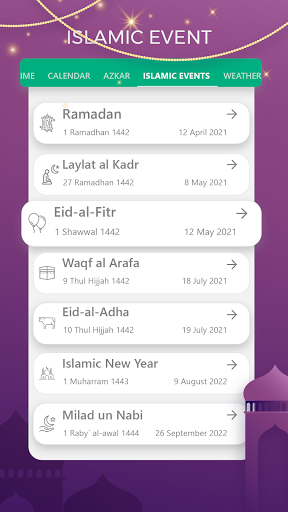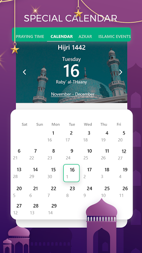 - Islamic Calendar; to notify you of all upcoming Islamic events (includes both Hijri and Gregorian dates)