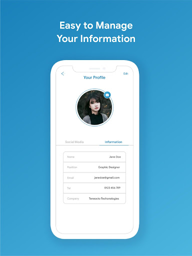 - Your information can be easily edited to integrate with other application functions such as sharing business cards and sharing social networks.