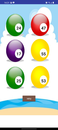 1) تعيين عدد كرات لوتو (40 ~ 60) 2) توليد أرقام لوتو. 3) الحصول على 6 أرقام لوتو.