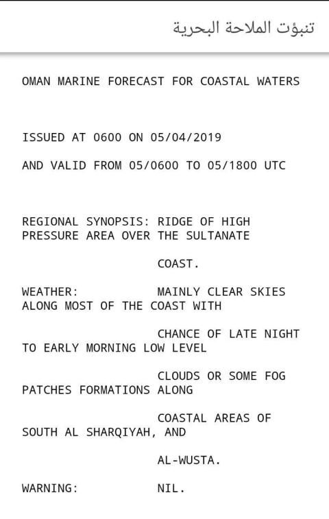 4- Contains weather warnings issued by Oman Meteorological Department.