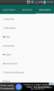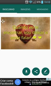 Aplicativo para a criação de imagens de status para redes sociais. Nesse aplicativo você pode combinar imagens e frases para formar lindas imagens e enviar para seus grupos e contatos nas redes sociais. Você também pode escrever seu próprio texto e surpreender a quem ama ou mandar aquela indireta rsrs.
