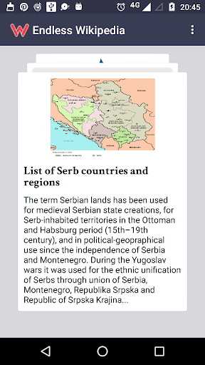 Endless Wikipedia Articles helps to discover knowledge in your free time such as traveling, felling bored, alone and don't know what to do. Then this app will help you to do discover knowledge with Wikipedia random articles instead of wasting time. Provides productivity in your free time with just swiping articles around world from Wikipedia.