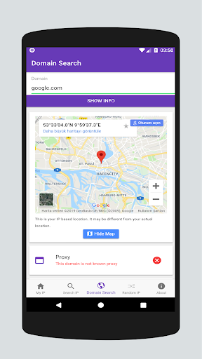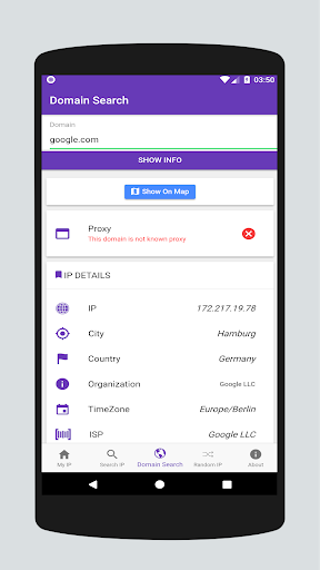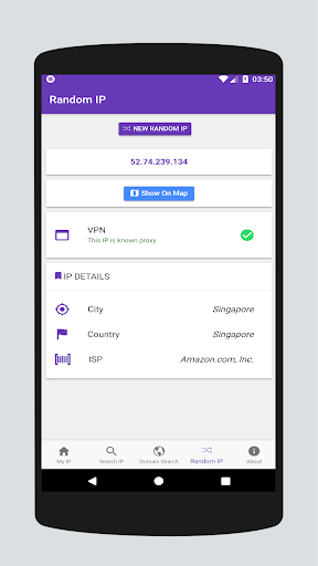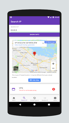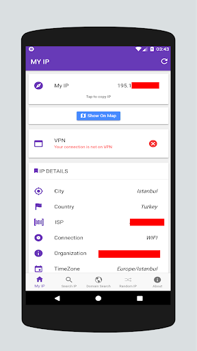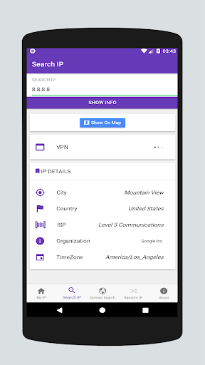 This application displays the ip information of your current ip address or vpn / proxy services you are using.