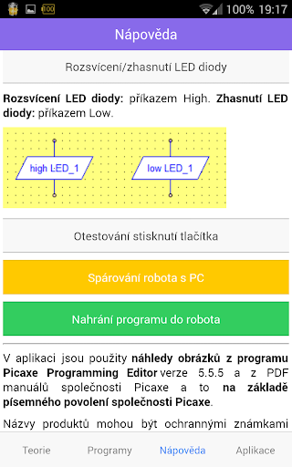 Aplikace přináší teoretický popis a praktické ukázky programování robota firmy hses.cz, který je založen na mikrokontroléru Picaxe 20M2.