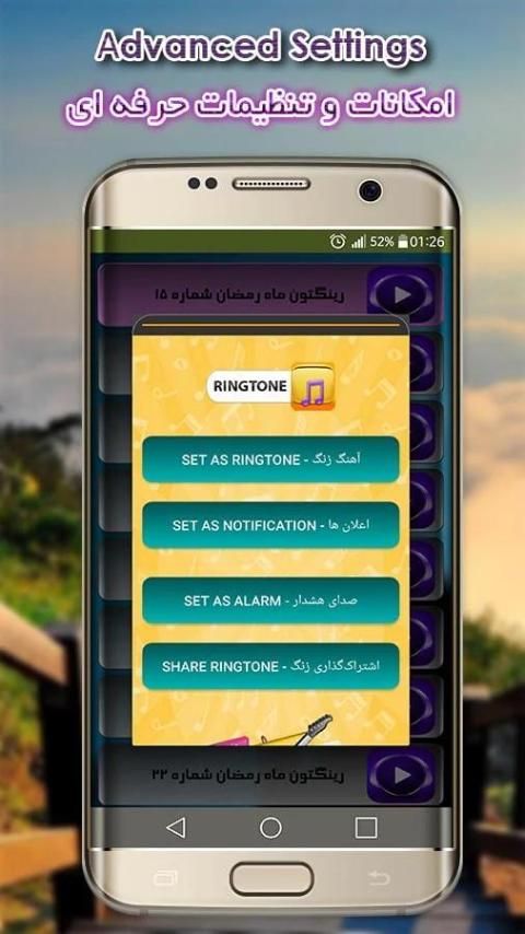 شما میتوانید بعد از شنیدن هر رینگتون از صفحه باز شده ، آن را به عنوان زنگ موبایل یا صدای هشدار و یا اعلان ها قرار دهید .