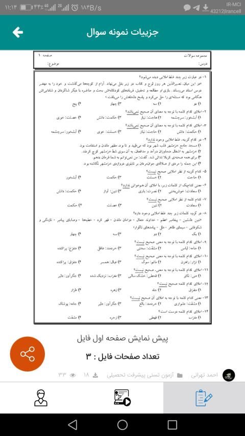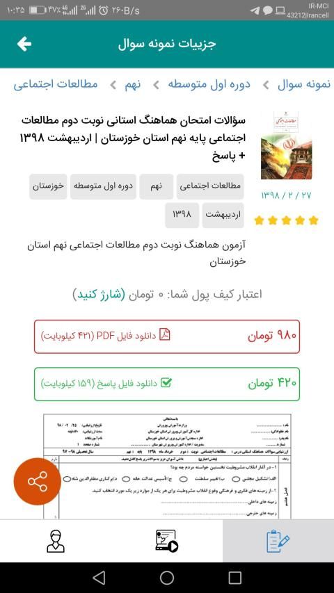 امکان مشاهده پیش نمایش صفحه اول نمونه سوالات