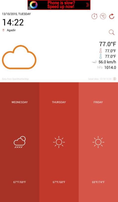 Weather today, plain and simple software allows you to see the weather in all countries of the world, choose whole city name you want to know the weather conditions.