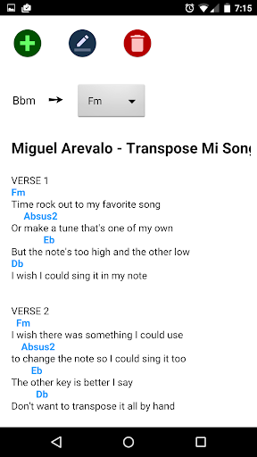 * Create, save, edit and share your own music chords or simply transpose them on the fly without saving.