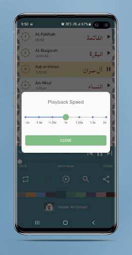 Every Surah will be played back to back automatically. Don't need to tab again and again on every Surah.